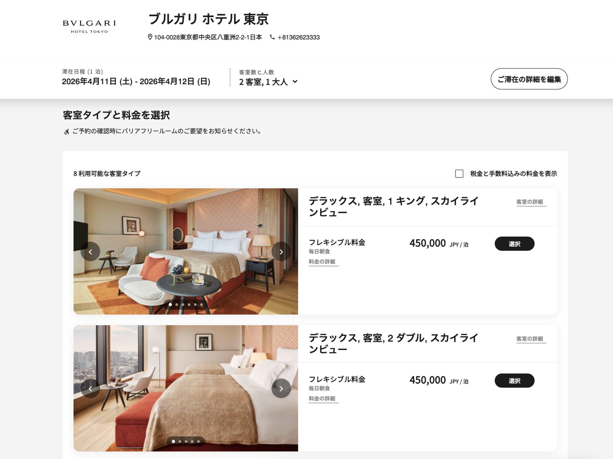 現在、スイートルームに宿泊しようとすると、アマン、ザ・リッツ・カールトン、マンダリンオリエンタル、ザ・ペニンシュラといった外資系の一級ホテルでは、1泊15万円〜40万円が一つの目安になります。さらにブルガリホテルのようなブランドホテルになると、50万円から100万円近い価格帯の部屋も存在し、面積も100〜300平米級に達します。