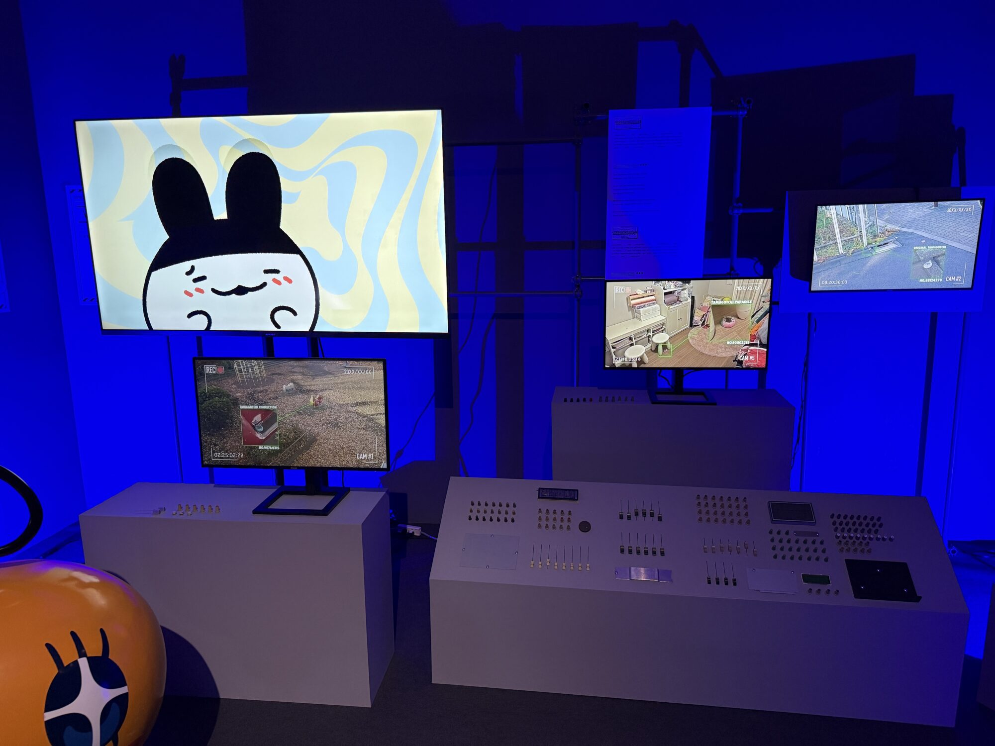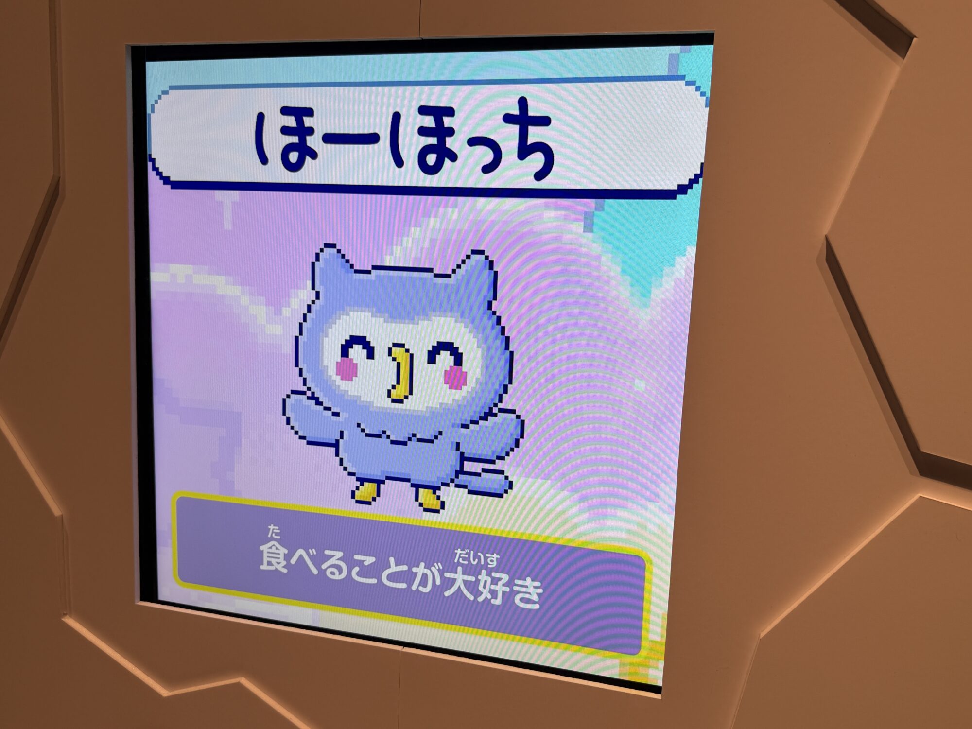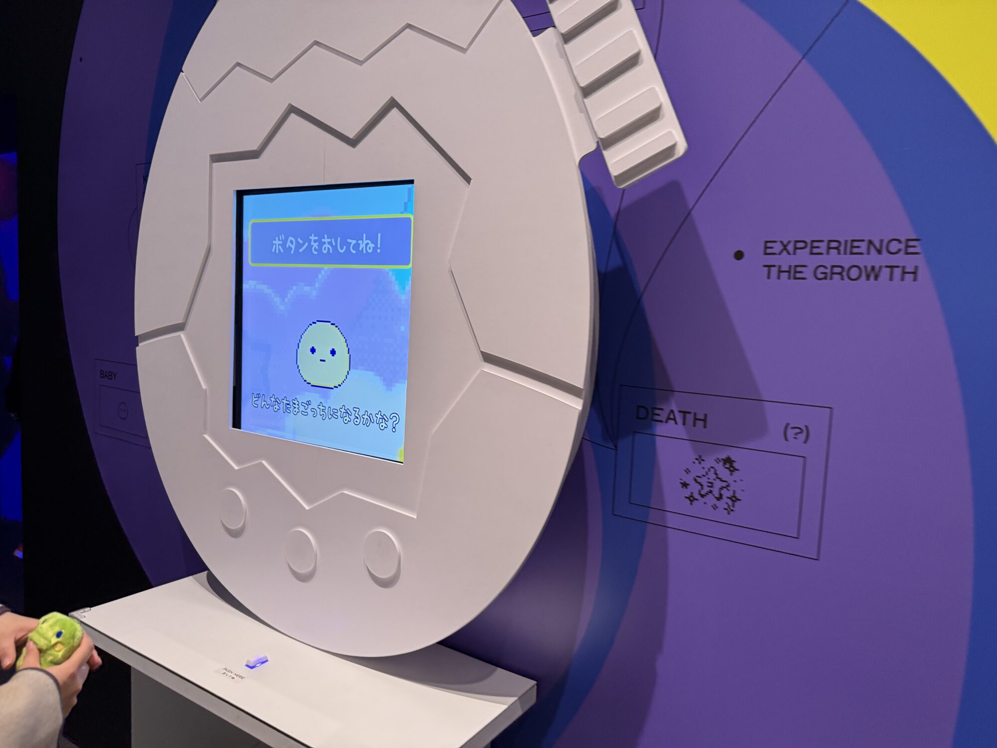 この先には体験型のコーナーがあり、大きなたまごっちのような装置が設置されています。