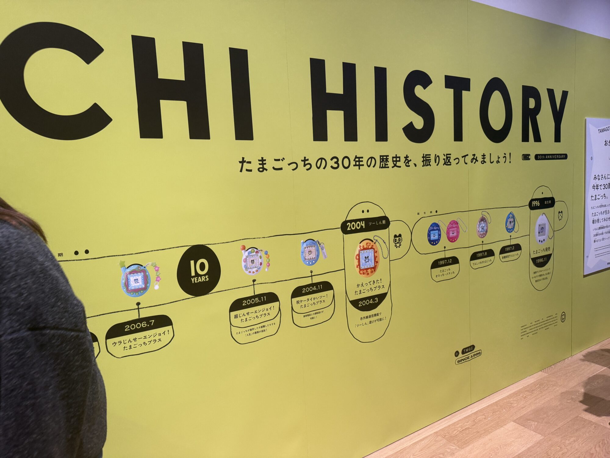 こちらのコーナーでは、歴代たまごっちの誕生から現代までの歴史が、パネル展示で紹介されています。
