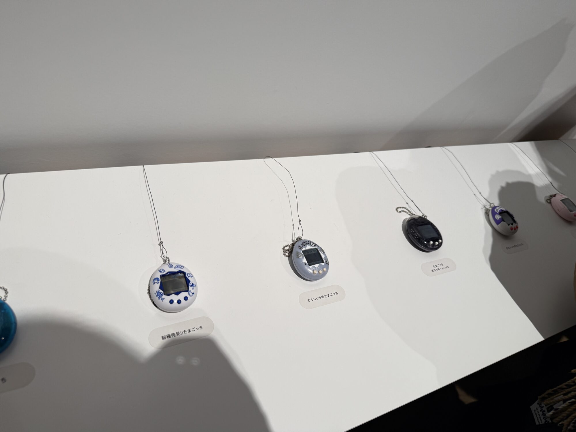 その反対側には、懐かしのたまごっち実機がずらりと並ぶコーナーがあり、実際に触って遊び、育てることができるようになっています。ただし、こちらは非常に人気が高く、どうしても人が集まりがちです。「行列は作らずご覧ください」と案内はされているものの、当時この世代をリアルに体験していた女性の愛好家の方々が、かなり熱心に遊んでしまうため、タイミングによっては少し待つ必要があるかもしれません。