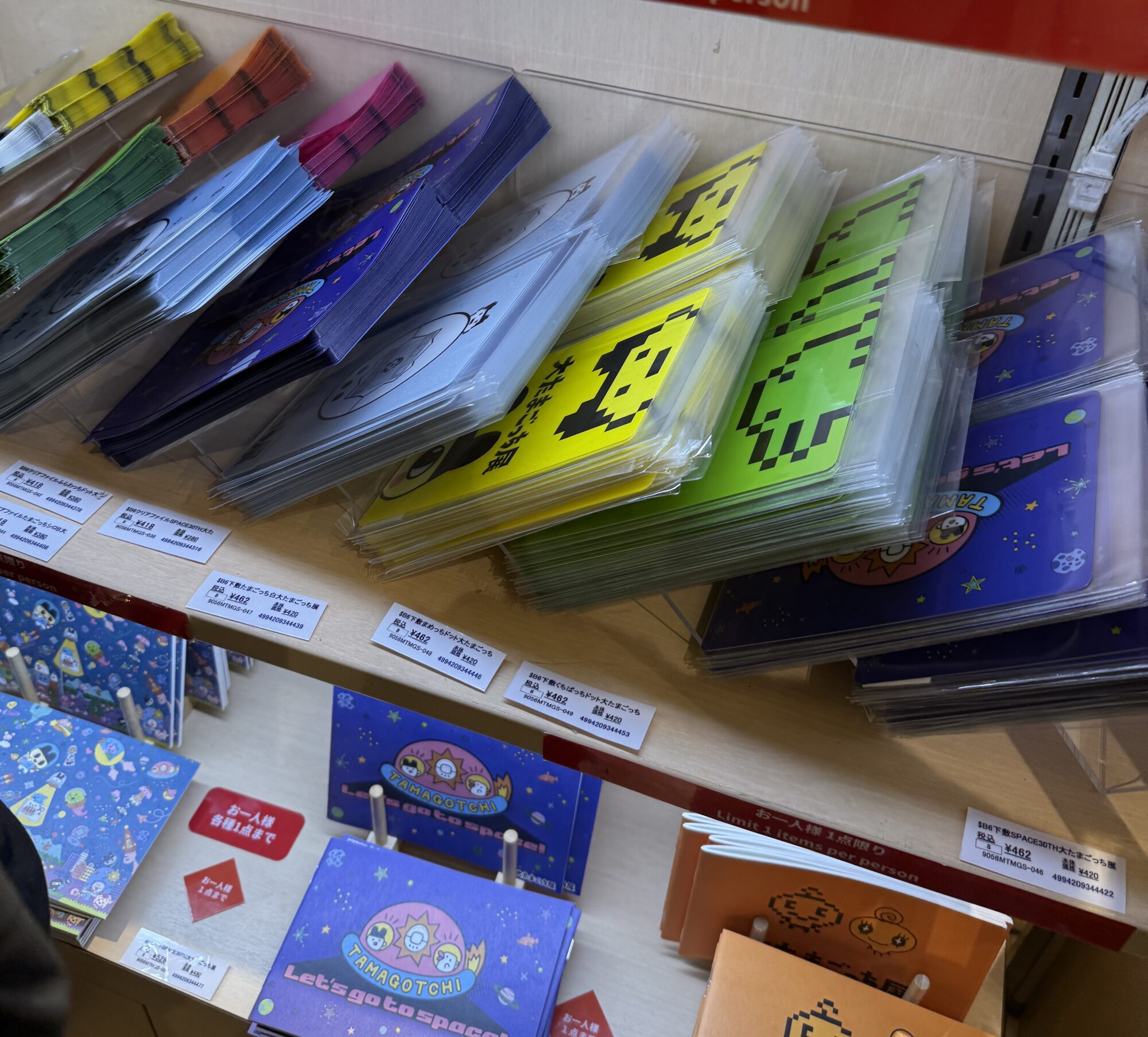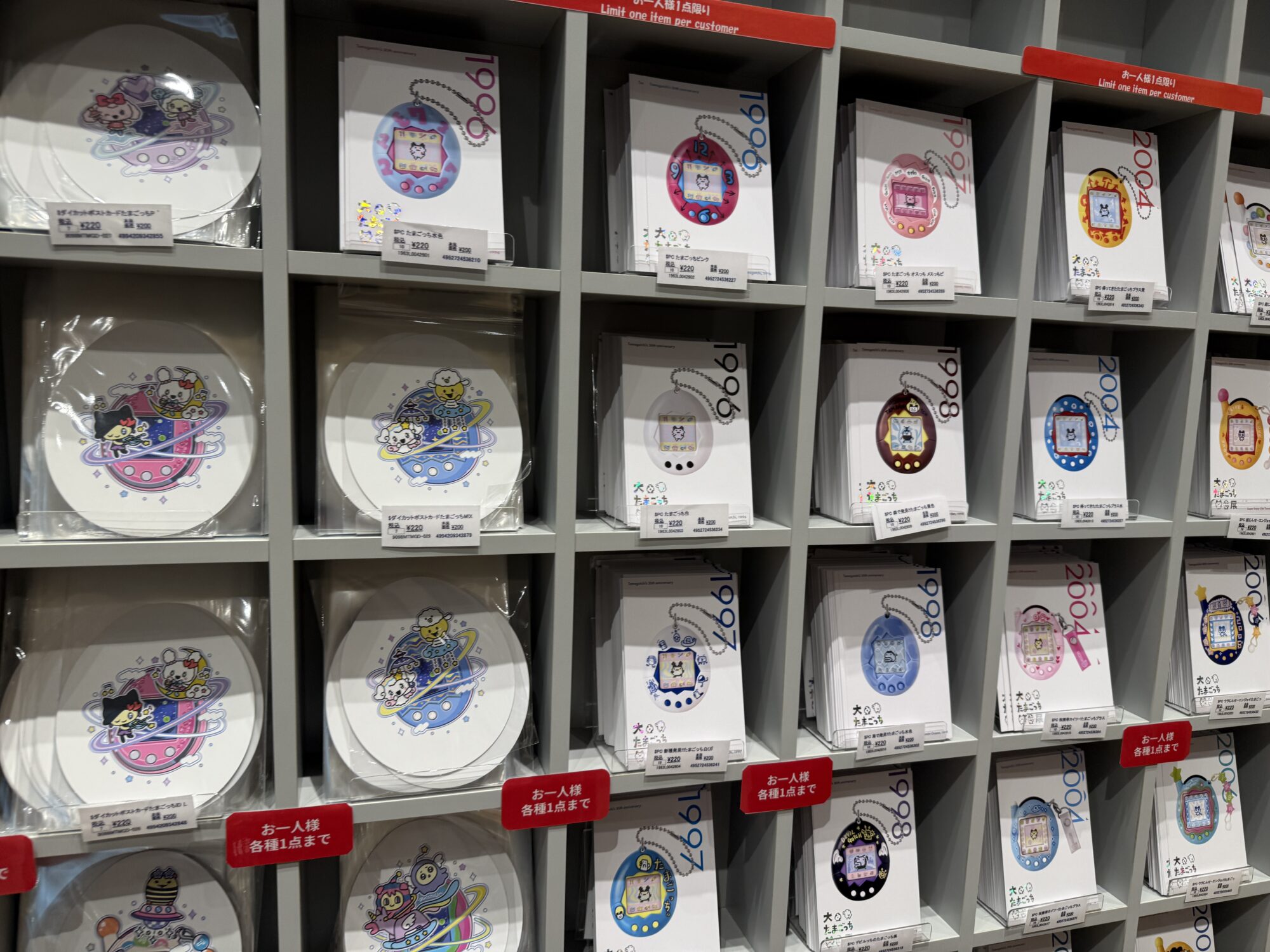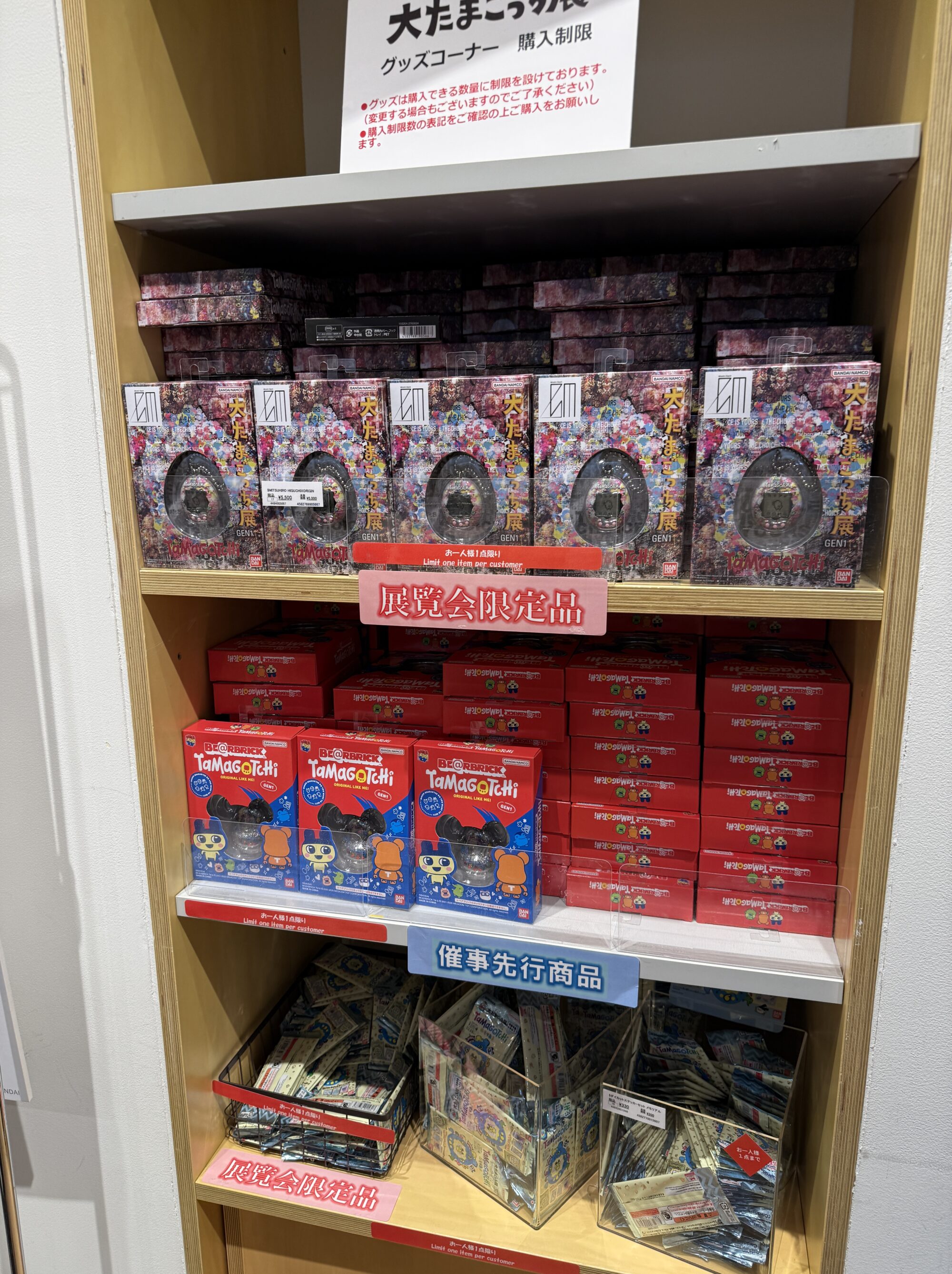 会場限定グッズは、手頃な価格帯のものも多く、ポストカードやクリアファイルなど、かわいらしいアイテムが豊富に揃っています。さらに、「ダイたまごっち店」限定のたまごっちも販売されており、このあたりはマニアであればぜひ押さえておきたいところです。実際に遊ばなくても、コレクション目的で欲しくなるレアな商品がずらりと並んでいます。