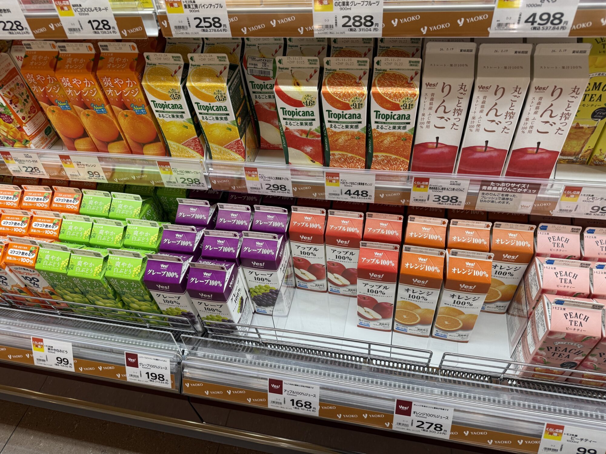 最近はオレンジジュースの価格が上がっているので仕方ない面もあると思いますが、濃縮還元のオレンジジュースが少量の在庫すら置かれていないことにも驚きました。また、代替として温州みかんや国産みかんのジュースがあるかというと、それもありませんでした。果汁10%程度の、かなり薄いオレンジジュースは販売されていましたが、結果的に、品質の低いものしか残っていない状況でした。
