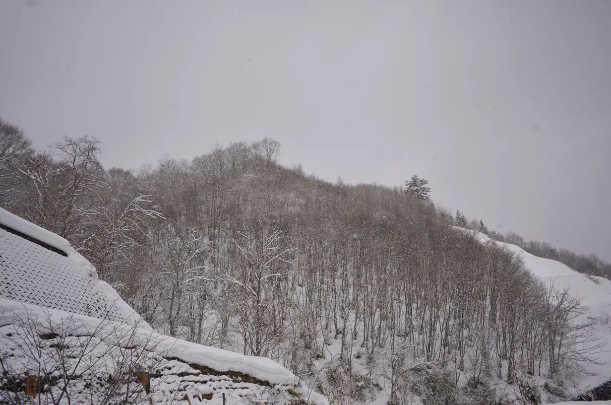 空も白く、雪で真っ白の写真ですが、絶妙な露光設定(オート)によって、美しく写っています。
