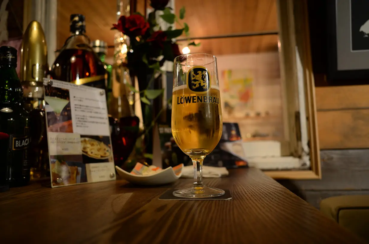 ジャズバーでの1カット。レーベンブロイのグラスのディティールがくっきりと、あまりの美しさにため息が出ます。