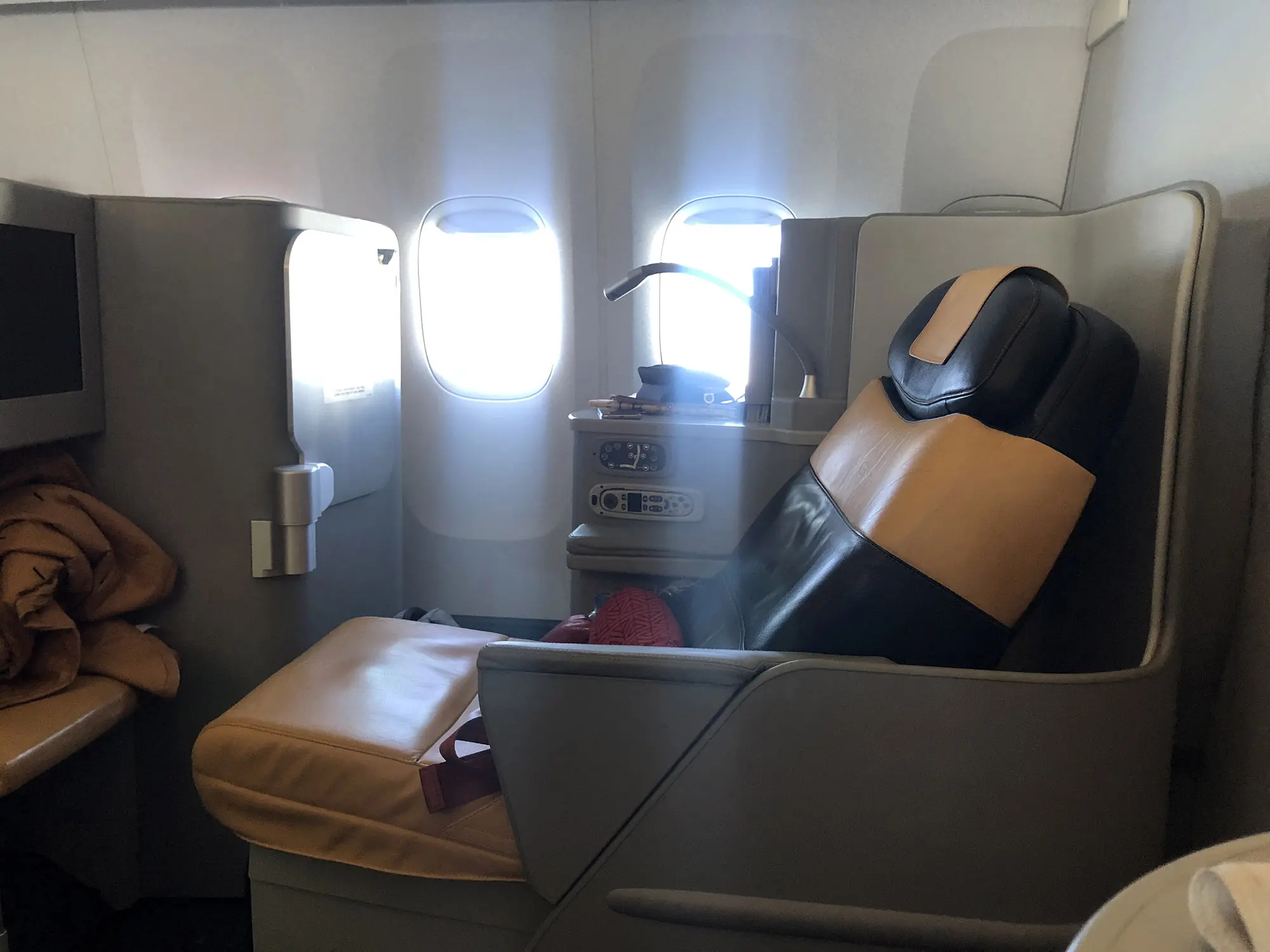 「うん!出来るよ!そのかわりサービスのグレードも落ちるけど」と説明されました。ワインやコーヒー、軽食、雑誌など様々なサービスがついてきますが、シートを移動するとそれらも変更されるようです。誰もいないだからいいじゃん!と思いますが、ファミリーシートの方が快適なので移動しました。