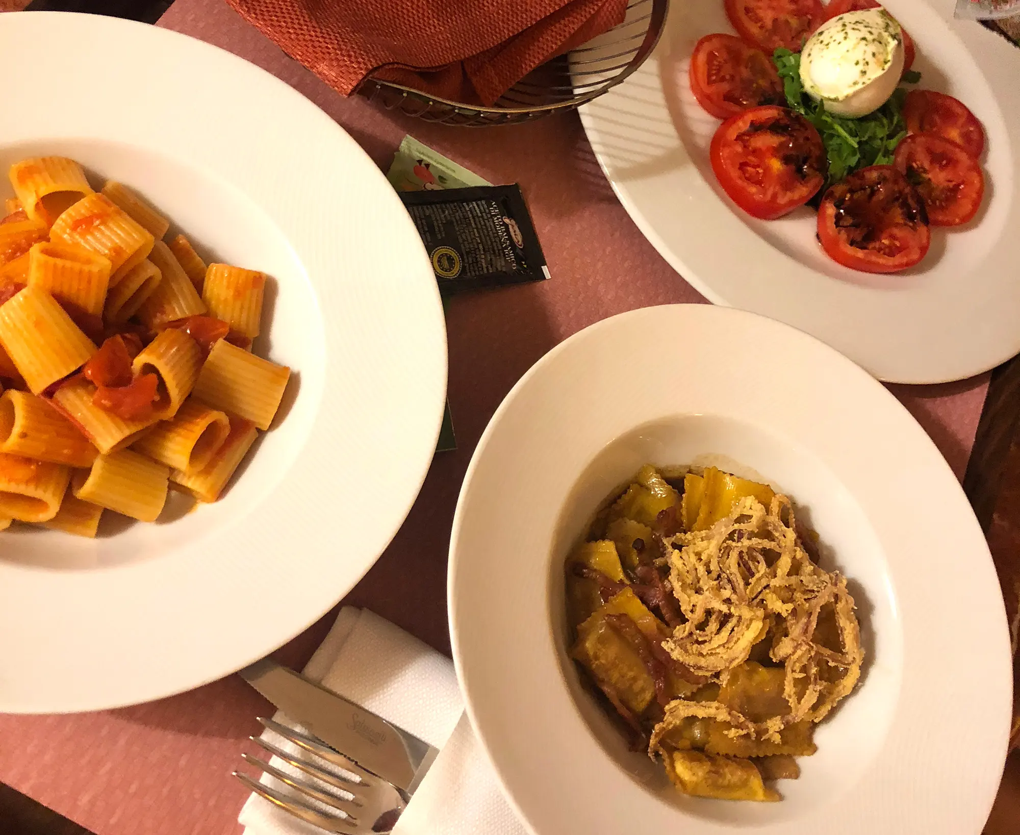 生ハムやサラダなど前菜は美味しいのですが、メインディッシュのパスタはゴリゴリでした。着席するとすぐに水は炭酸水かどうか聞かれるので、慌てずに答えるといいですね。