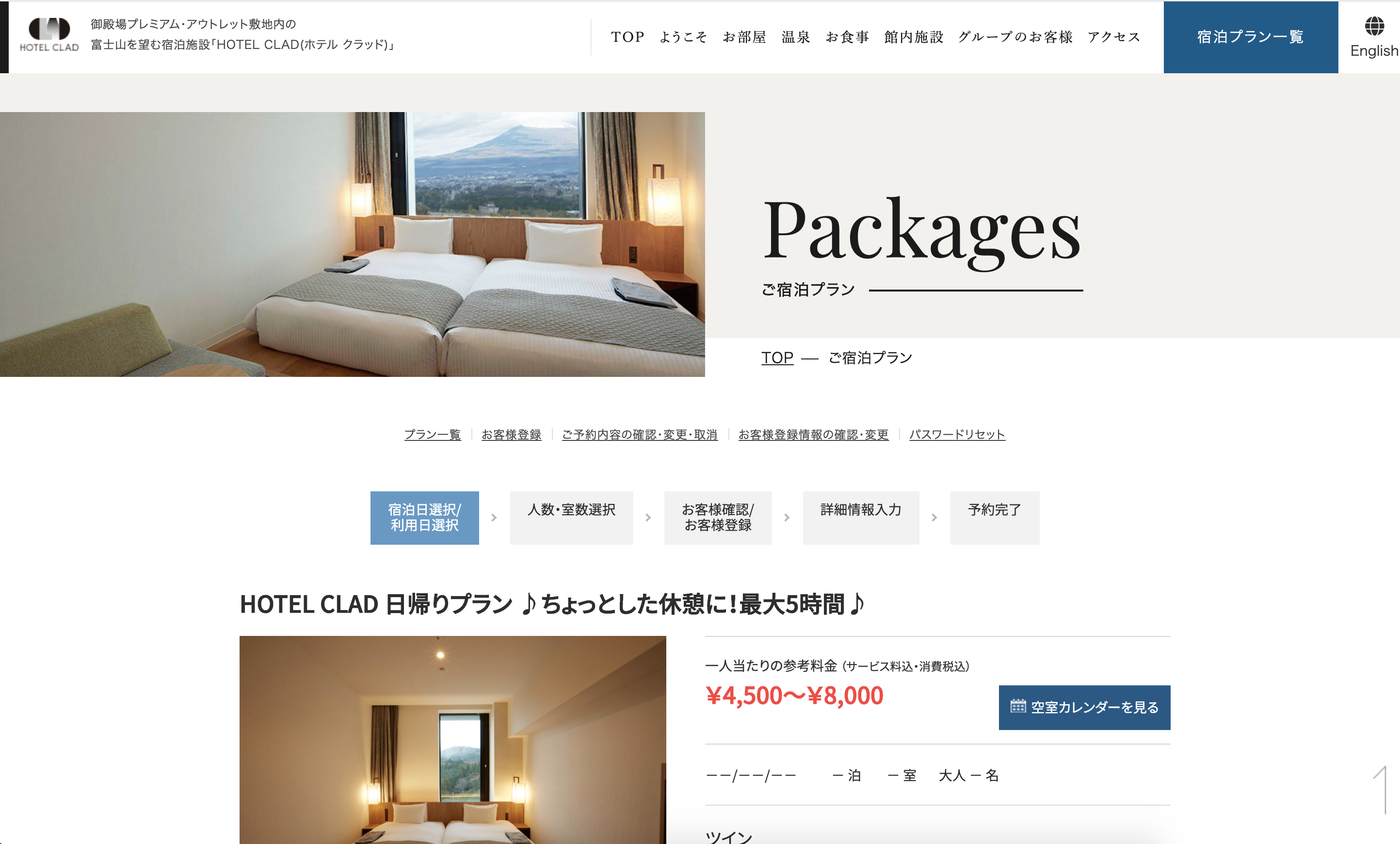 隣接したHOTEL CLAD(ホテル クラッド)では、買い物で疲れた人が休憩できるような日帰りプランも用意されています。平日忙しく働き、週末に家族サービスをしなければならないパパが温泉で待ってるよ、なんてことも出来そうです。
